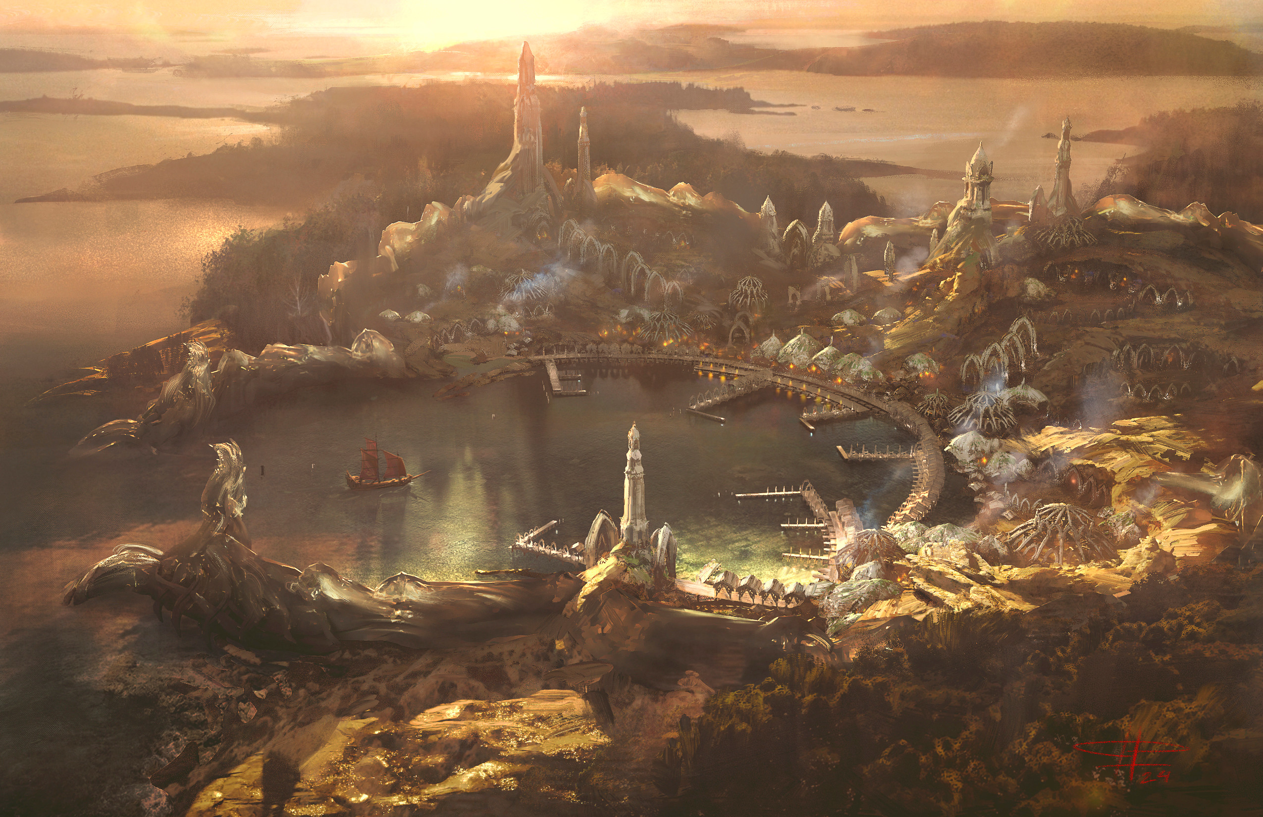 Set in the idilic Evermeet Islands, this once bustling port city now sees it's port emptied. Taltempla is an elven city that shows their architectural prowess with buildings mergging seamlessly with the surrounding rocky formations and forests.